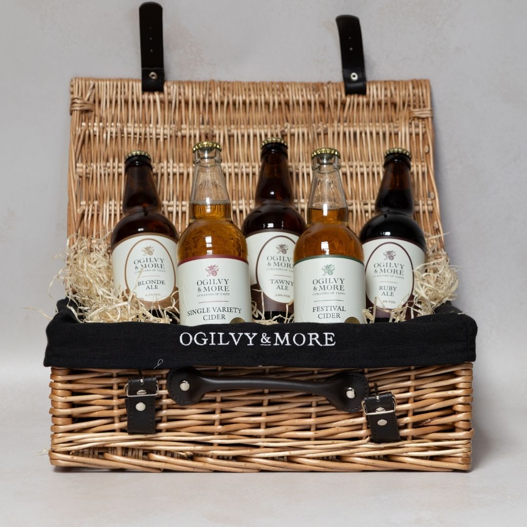 A beautifully packaged gift containing our Tawny Ale, Blonde Ale, Ruby Ale, Festival Cider, and Single Variety Cider, in one of our premium branded wicker hampers. The perfect thank you gift!