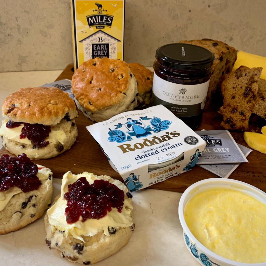 Nothing sums up the wonderful West Country like a Cream Tea! We have selected wonderful products from across the region to delight whoever is fortunate enough to enjoy this traditional treat. We think these HUGE Scones (you choose, Plain or Fruit) are the best you will find and we have mixed it up a little by serving it with Clotted Cream and our superb Morello Cherry and Kirsch Jam. You decide which goes on first!