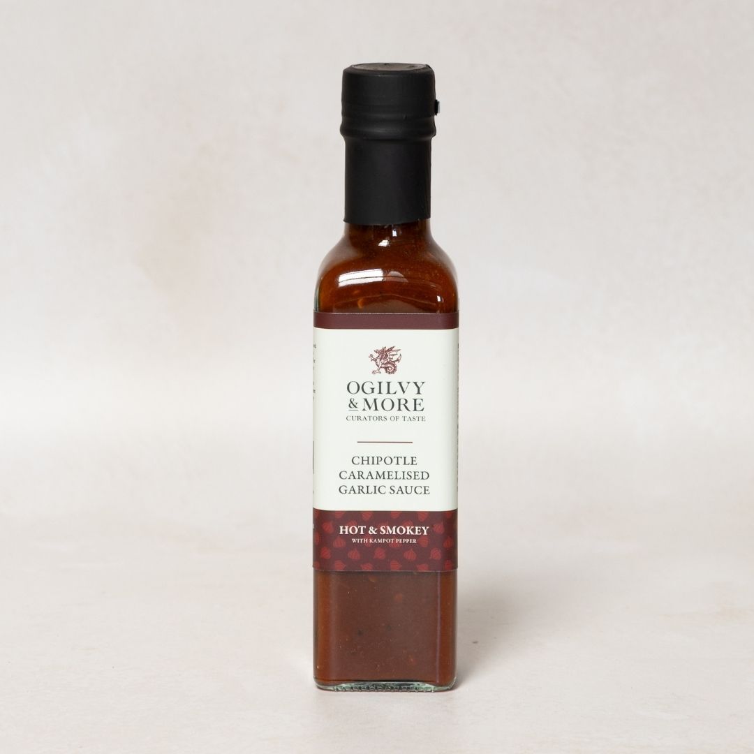 Our superb O&M Chipotle & Caramelised Garlic Sauce is made from the finest ingredients which are smoked, dried then fermented. The notorious Mexican Chipotle is at the heart of this sauce and that is teamed with Kampot pepper, caramelised garlic and delicious organic apple cider vinegar to create a sauce with a distinctive hot, smokey flavour which adds a unique touch to any meal.